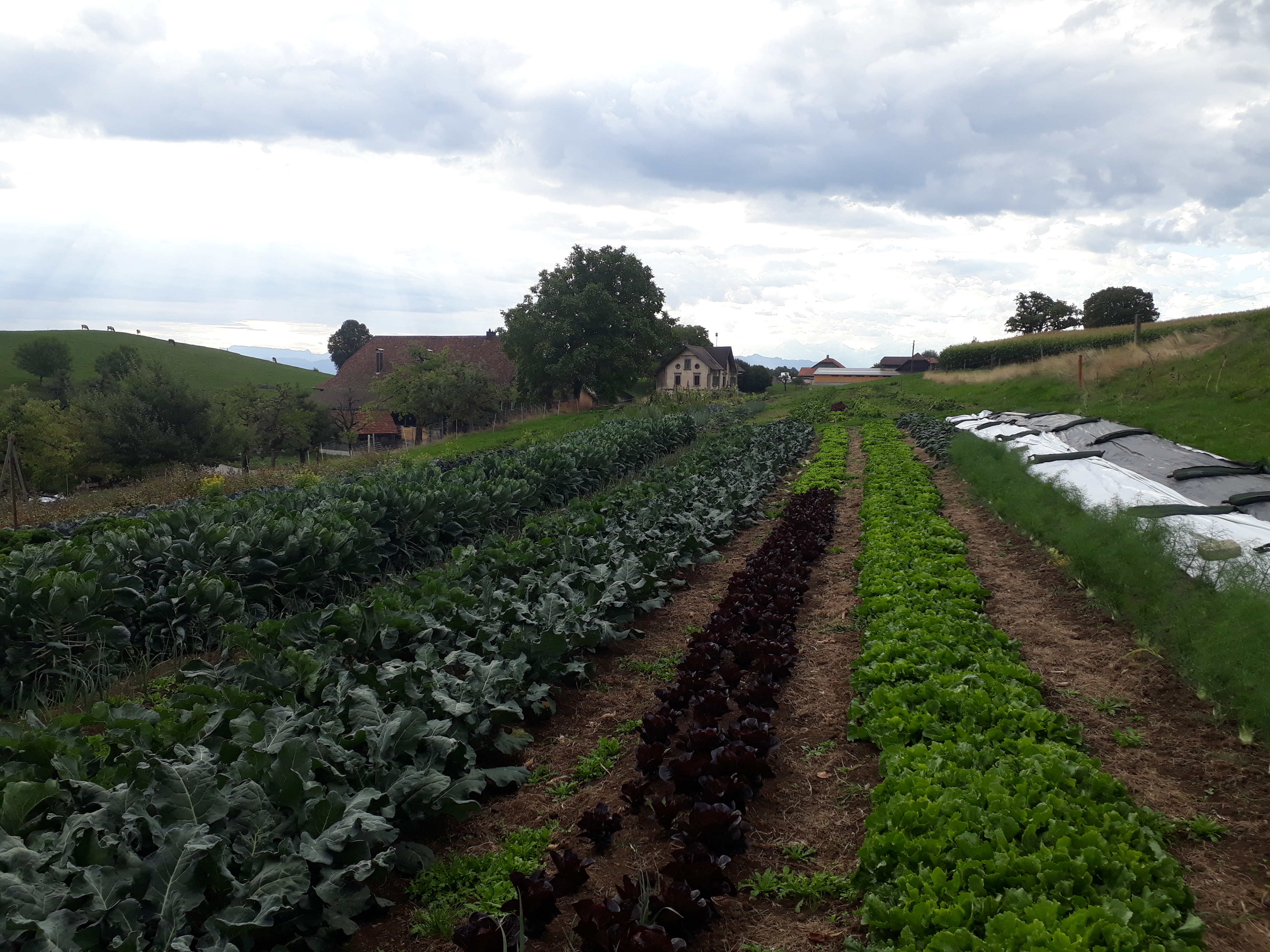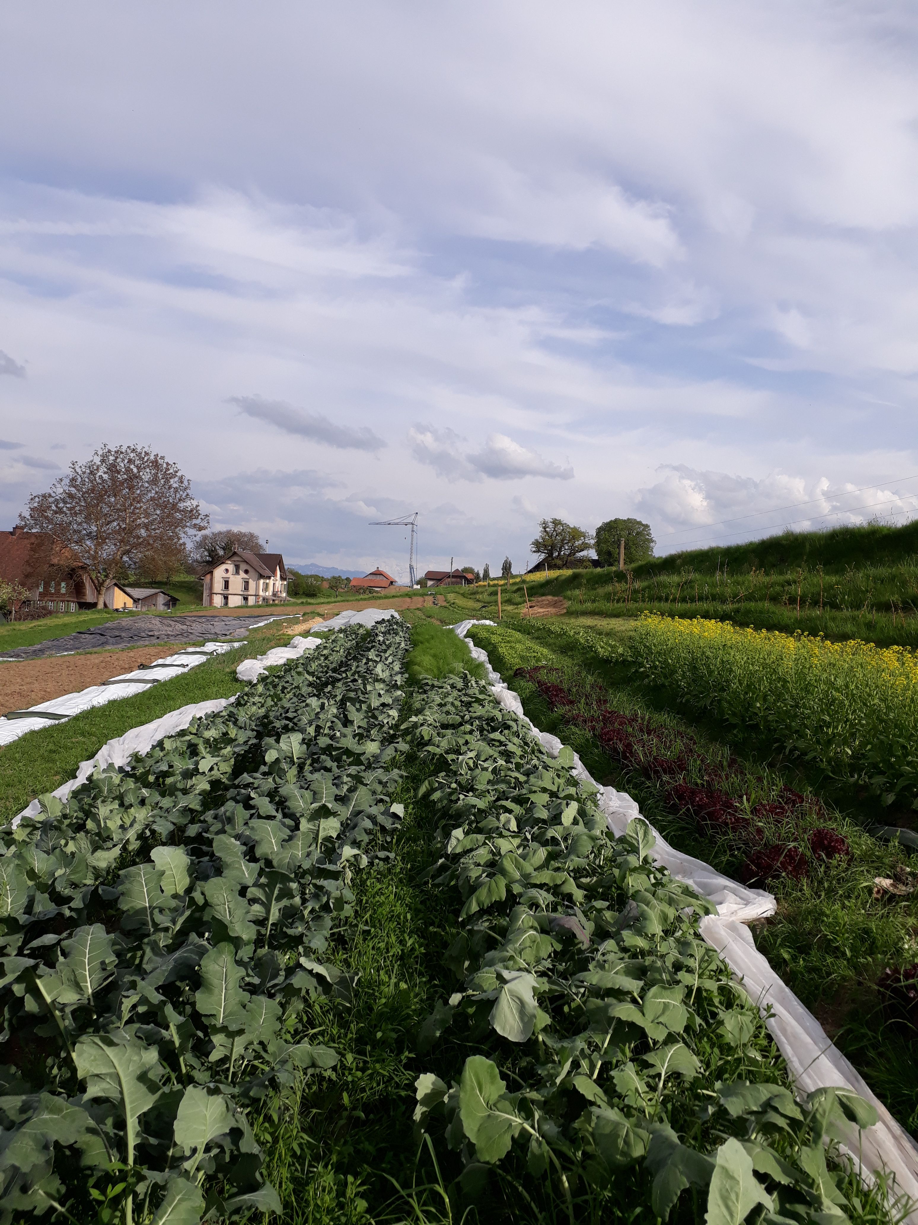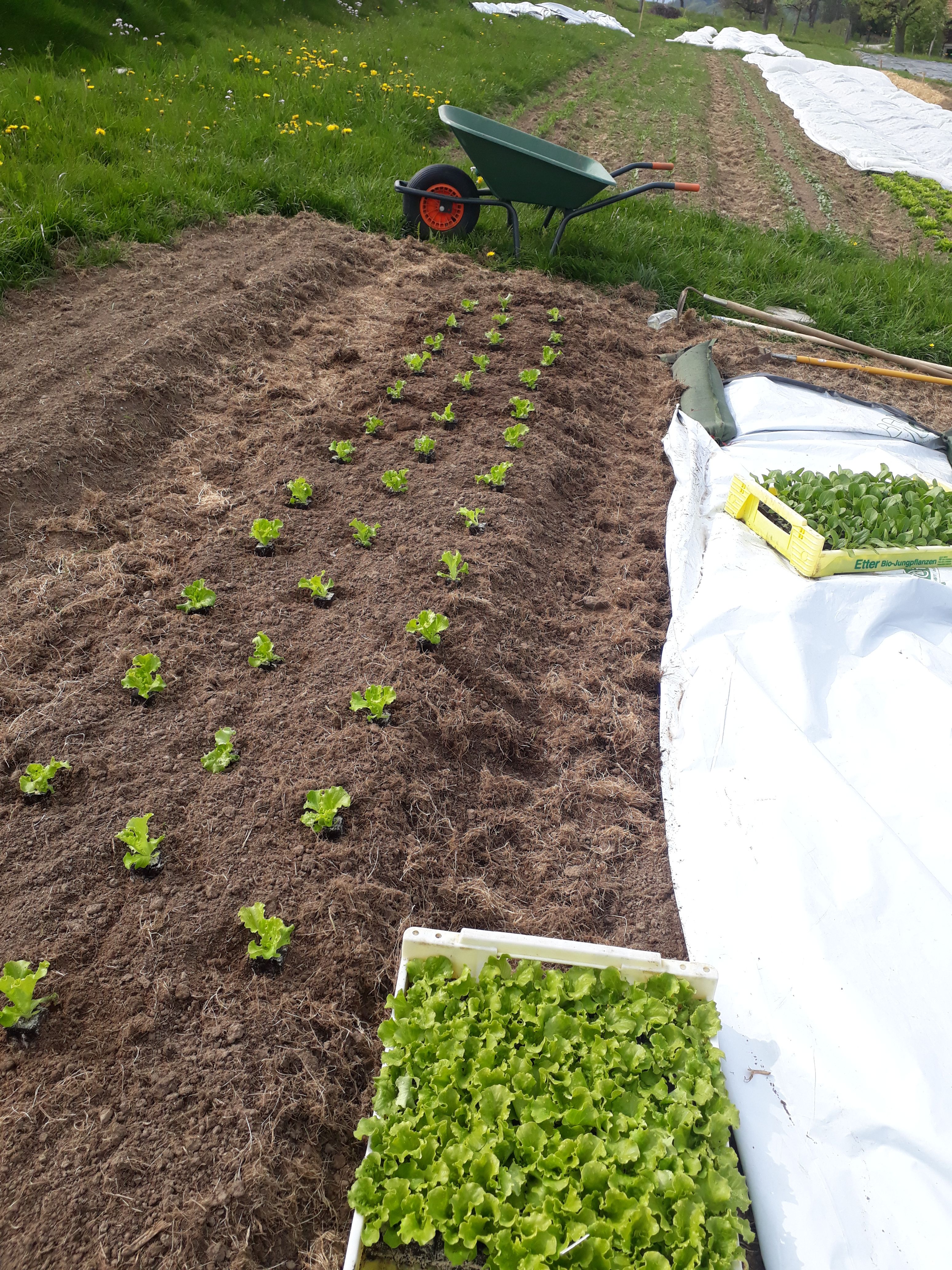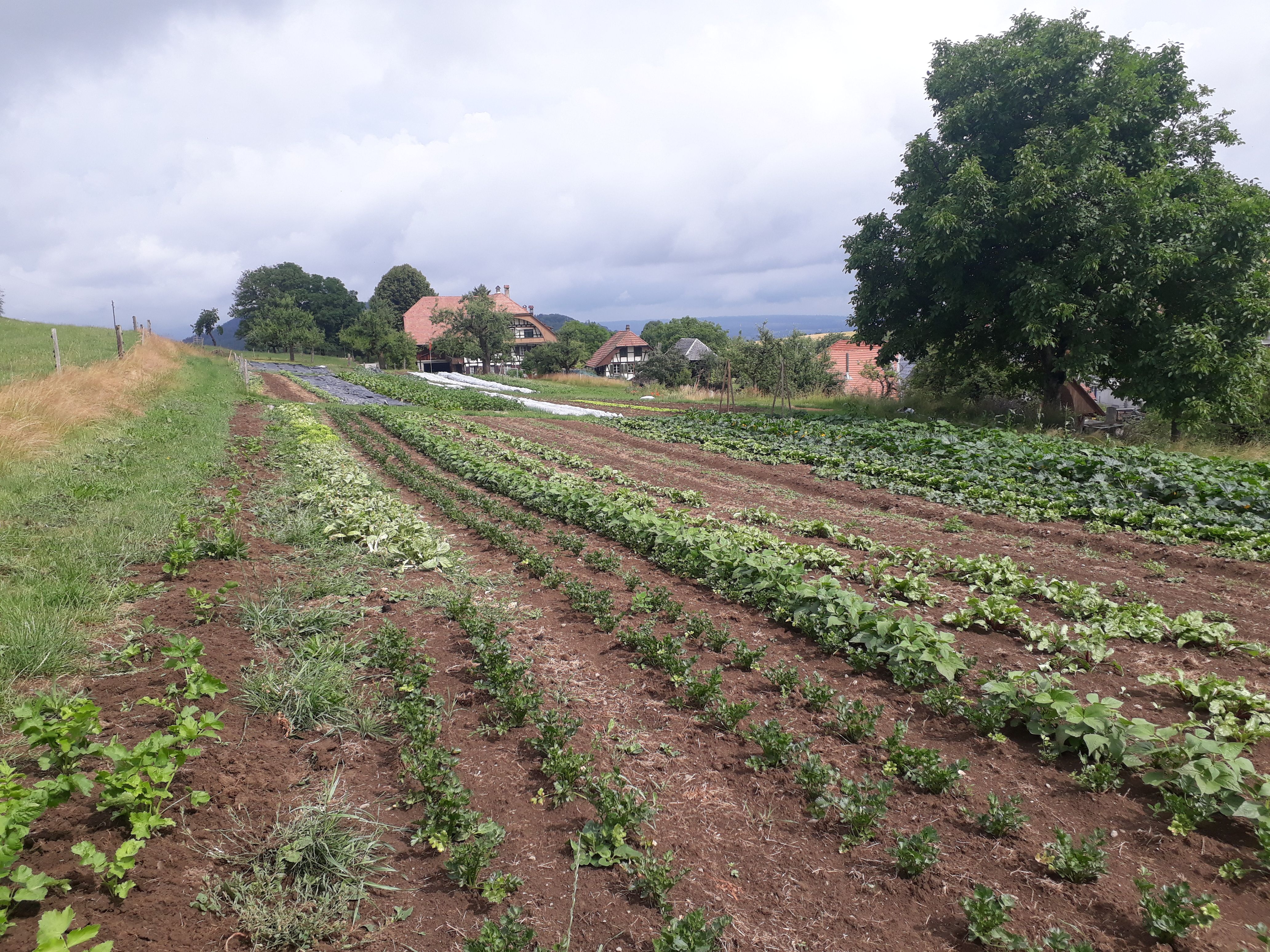 Das Saisongemüse wird, vorwiegend in Handarbeit, im 20 Aren Marktgarten angebaut. Es wächst Pestizidfrei und in grosser Vielfalt. So findet man neben Salaten, Zucchetti und Kohlrabi auch eher unbekannte Gemüse wie Pak Choi, Frischknoblauch oder Kardy.