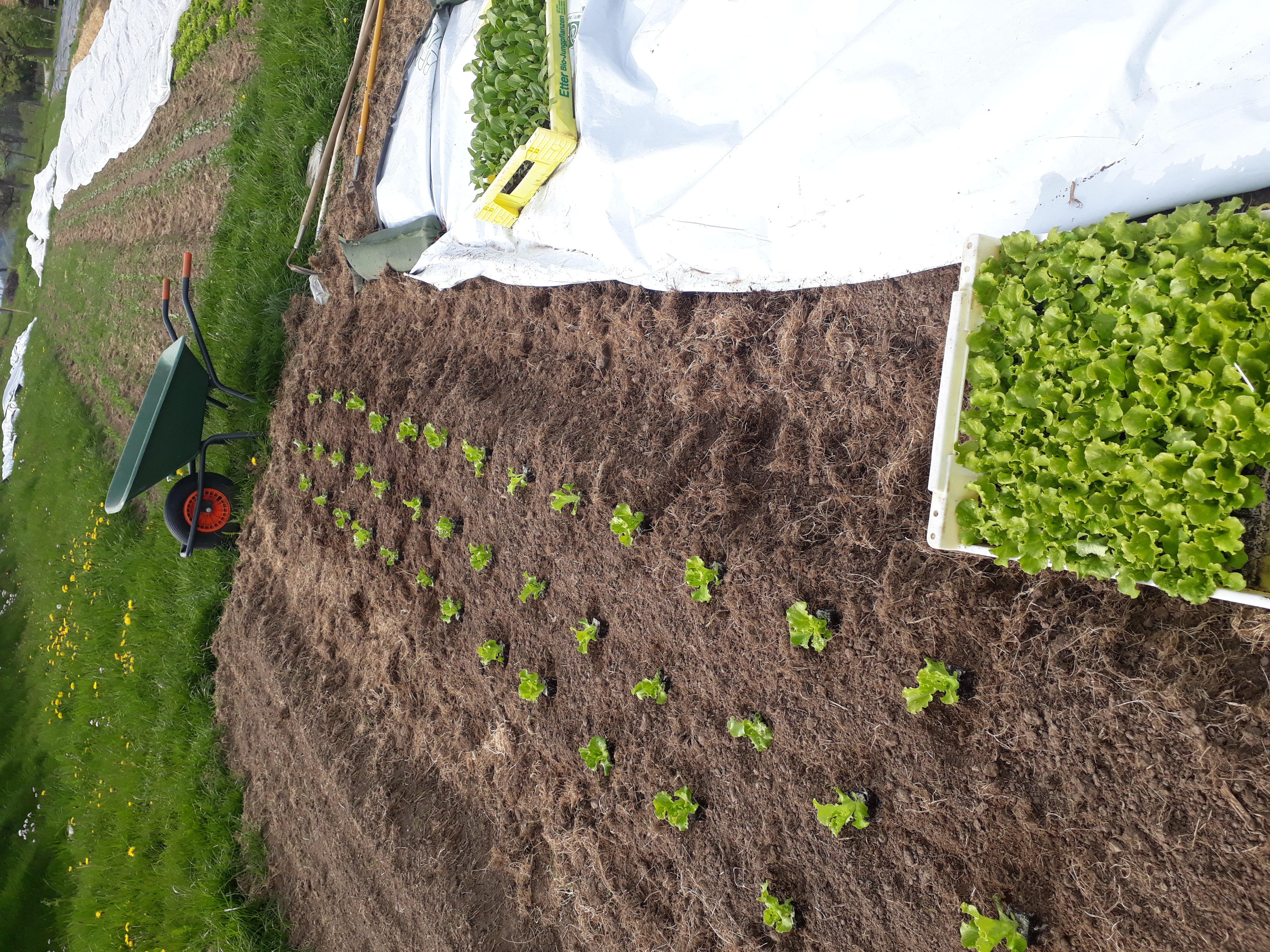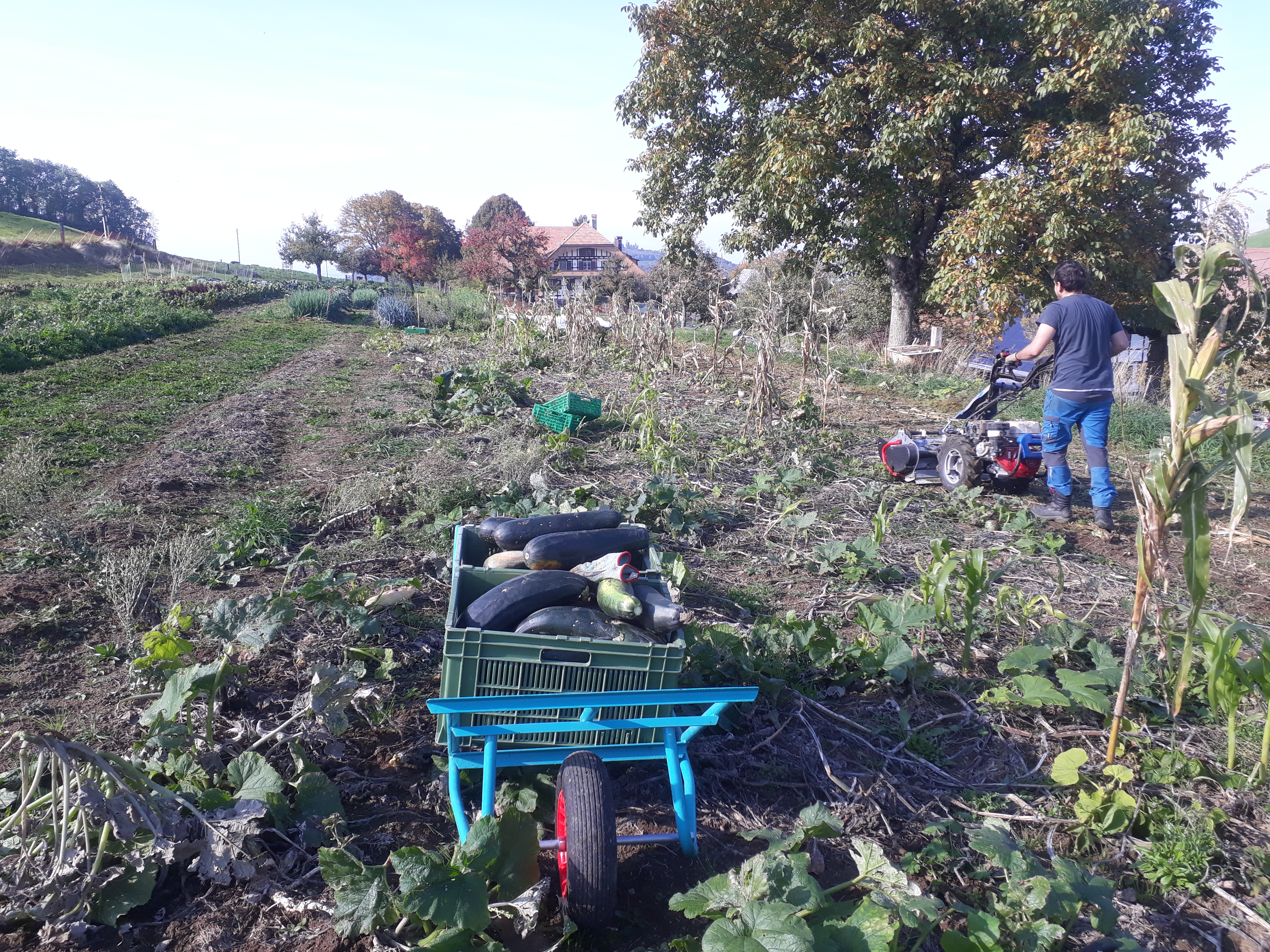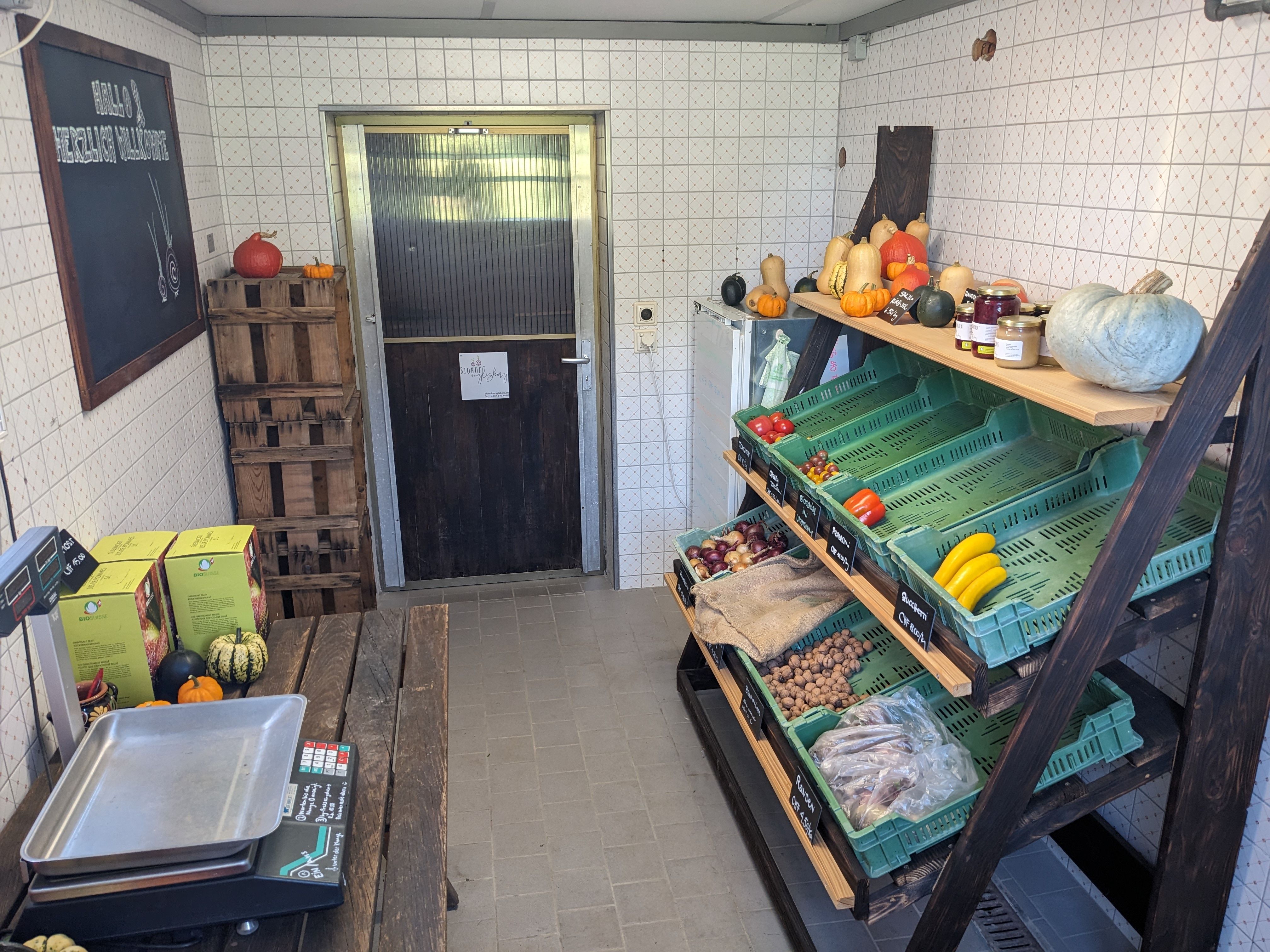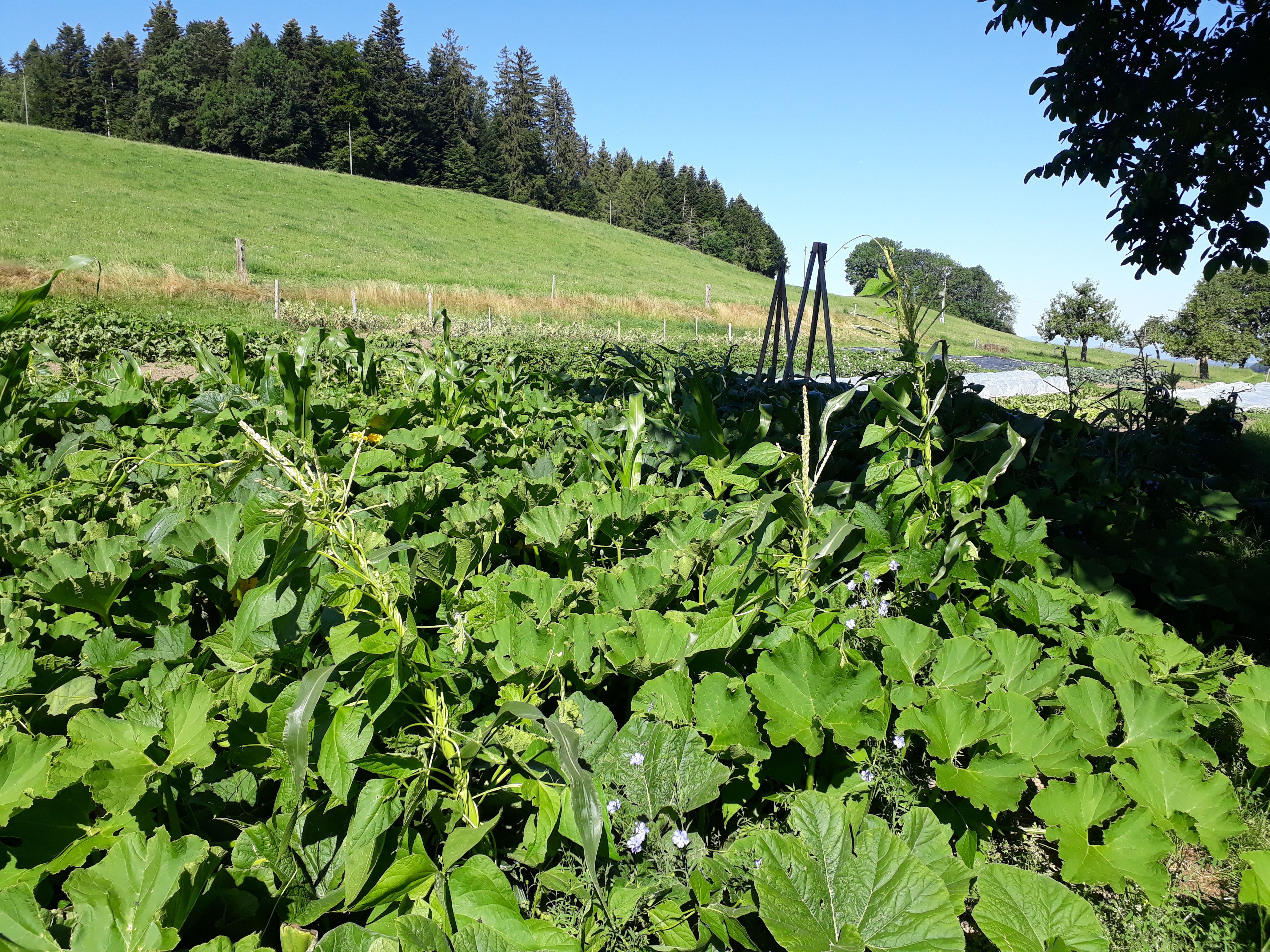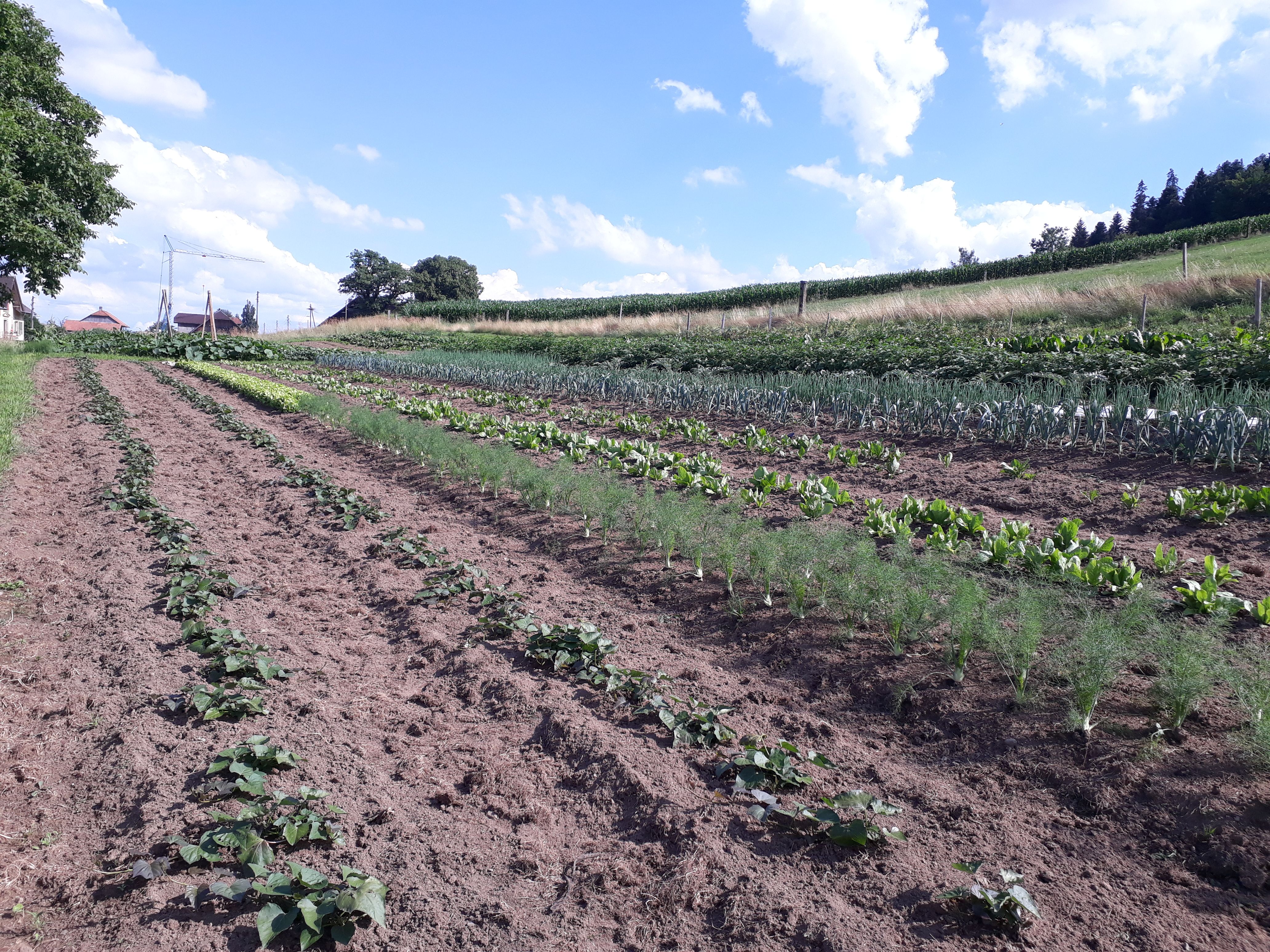 Das Saisongemüse wird, vorwiegend in Handarbeit, im 20 Aren Marktgarten angebaut. Es wächst Pestizidfrei und in grosser Vielfalt. So findet man neben Salaten, Zucchetti und Kohlrabi auch eher unbekannte Gemüse wie Pak Choi, Frischknoblauch oder Kardy.