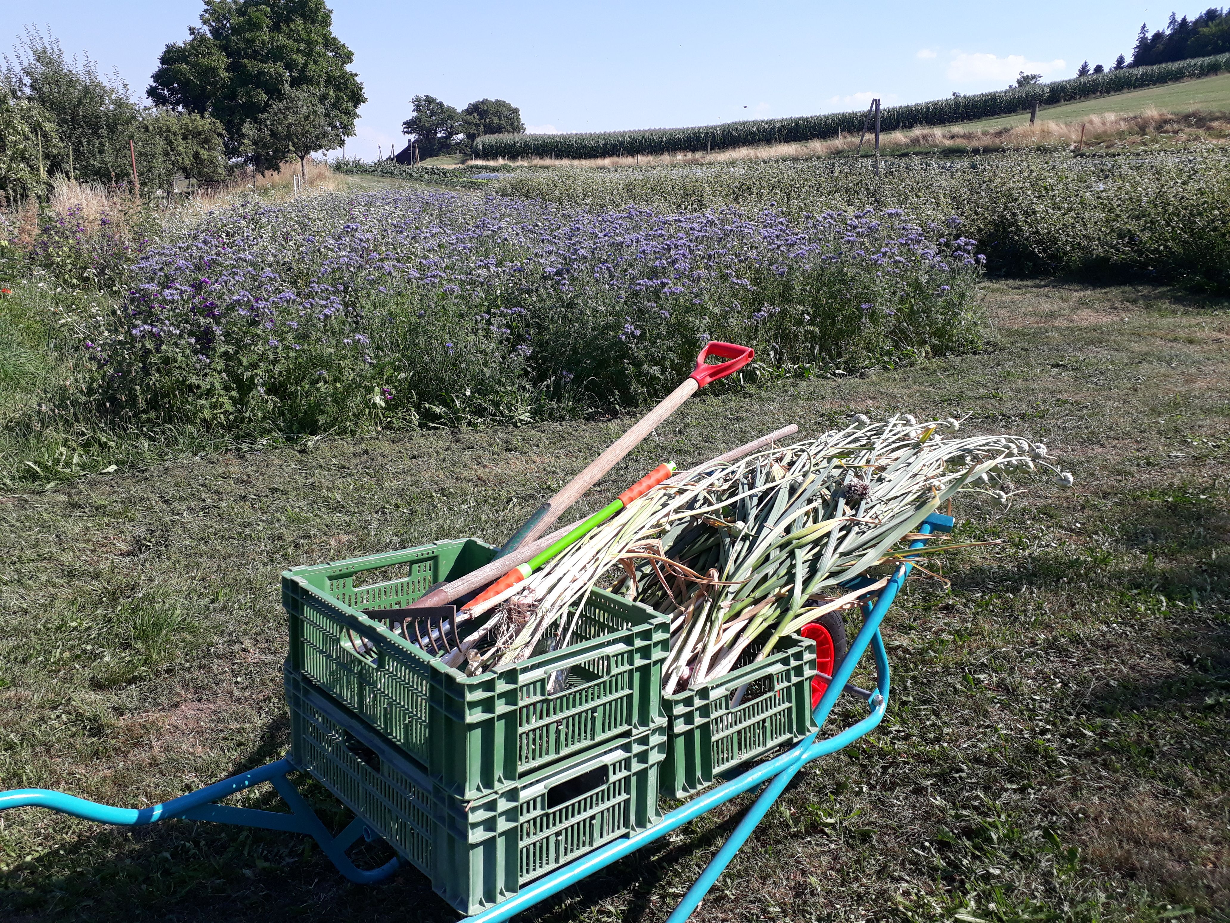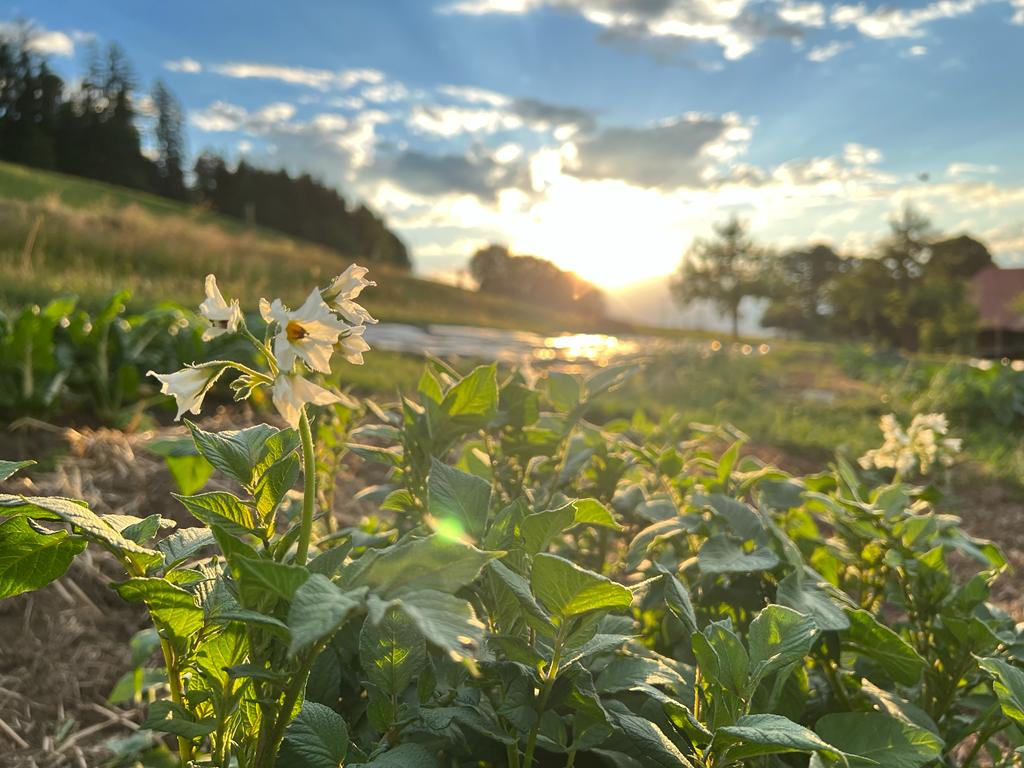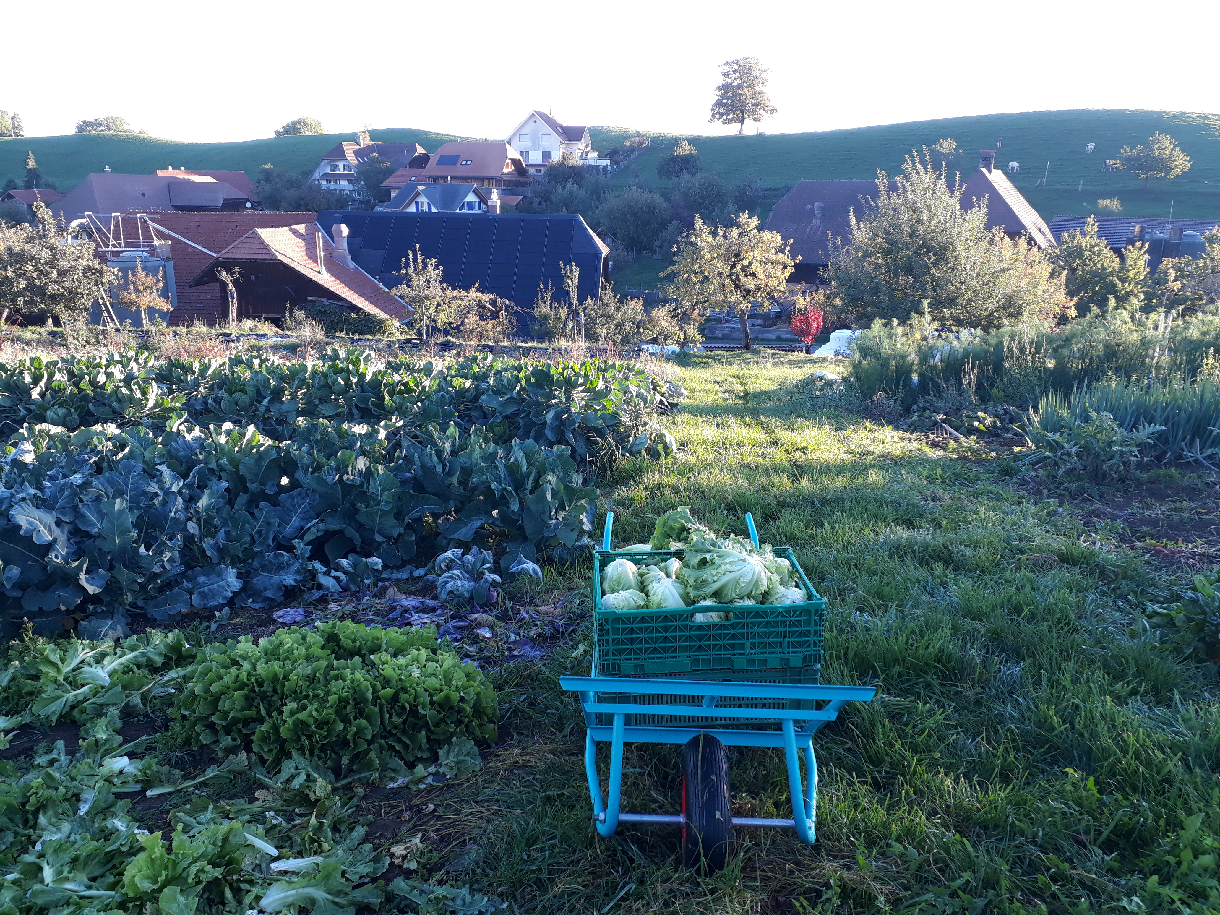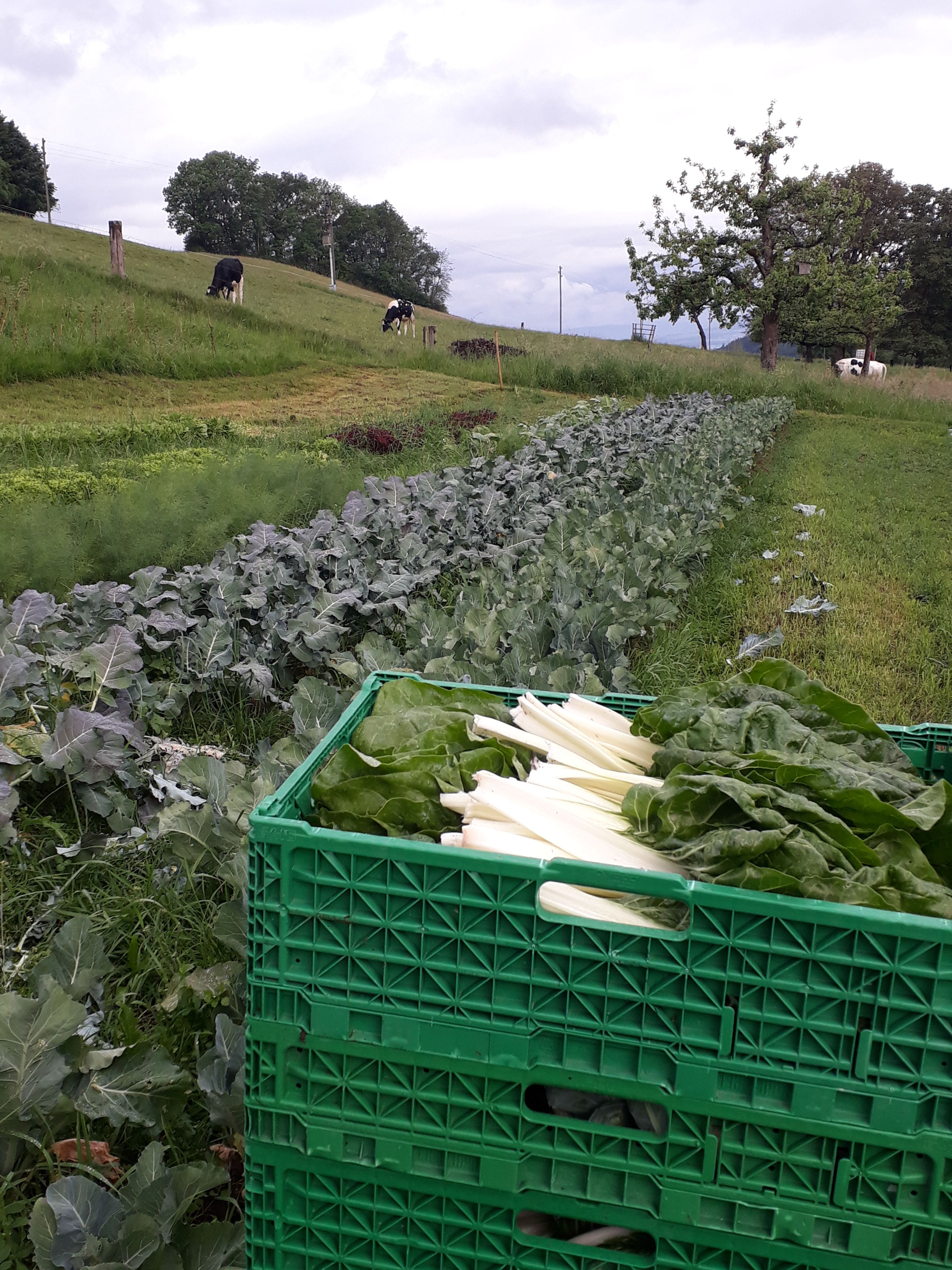 Je nach dem was auf 800 m ü. M. gärtnerisch gelingt, gerade Saison hat, oder gut gelagert werden kann, ist dann im Saisonabo oder im Hofladen zu finden. Jede Woche eine Überraschung.